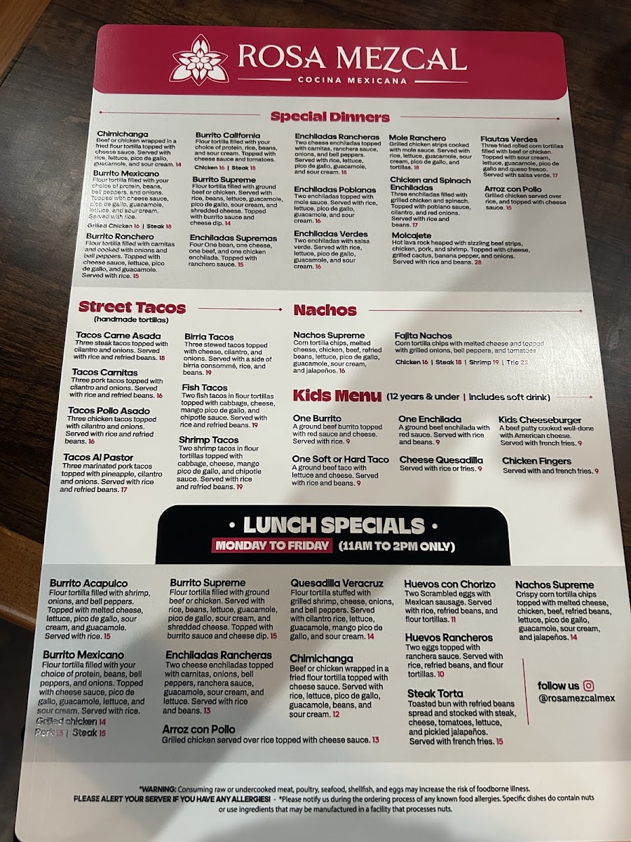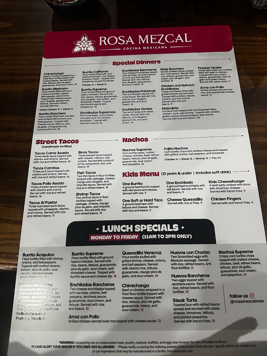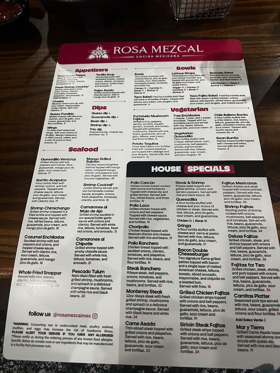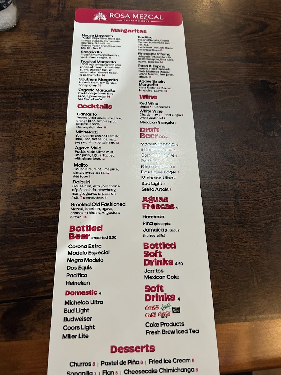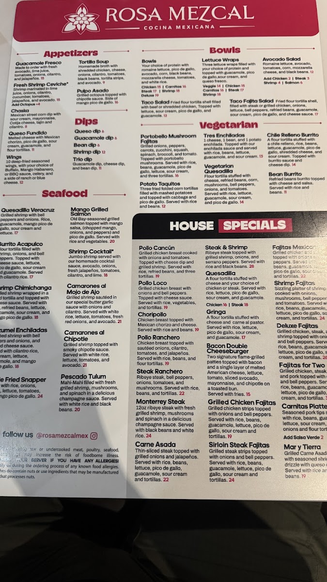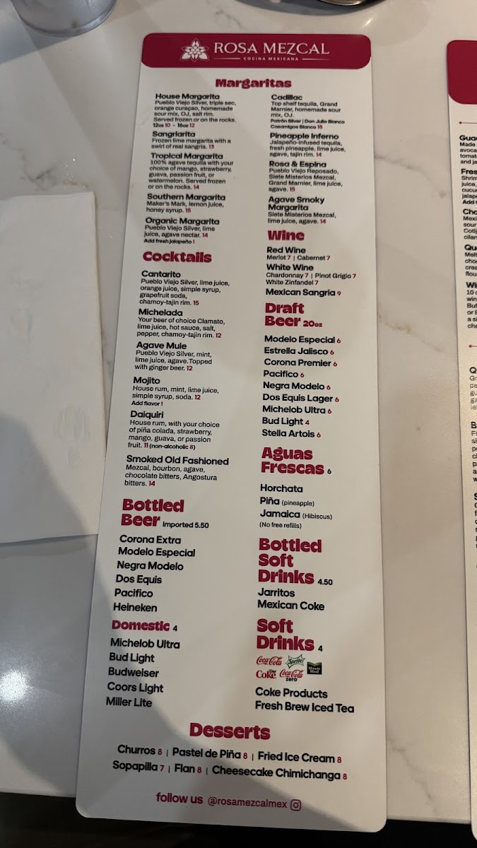 Rosa Mezcal Cocina Mexicana Menu (Update 2025)